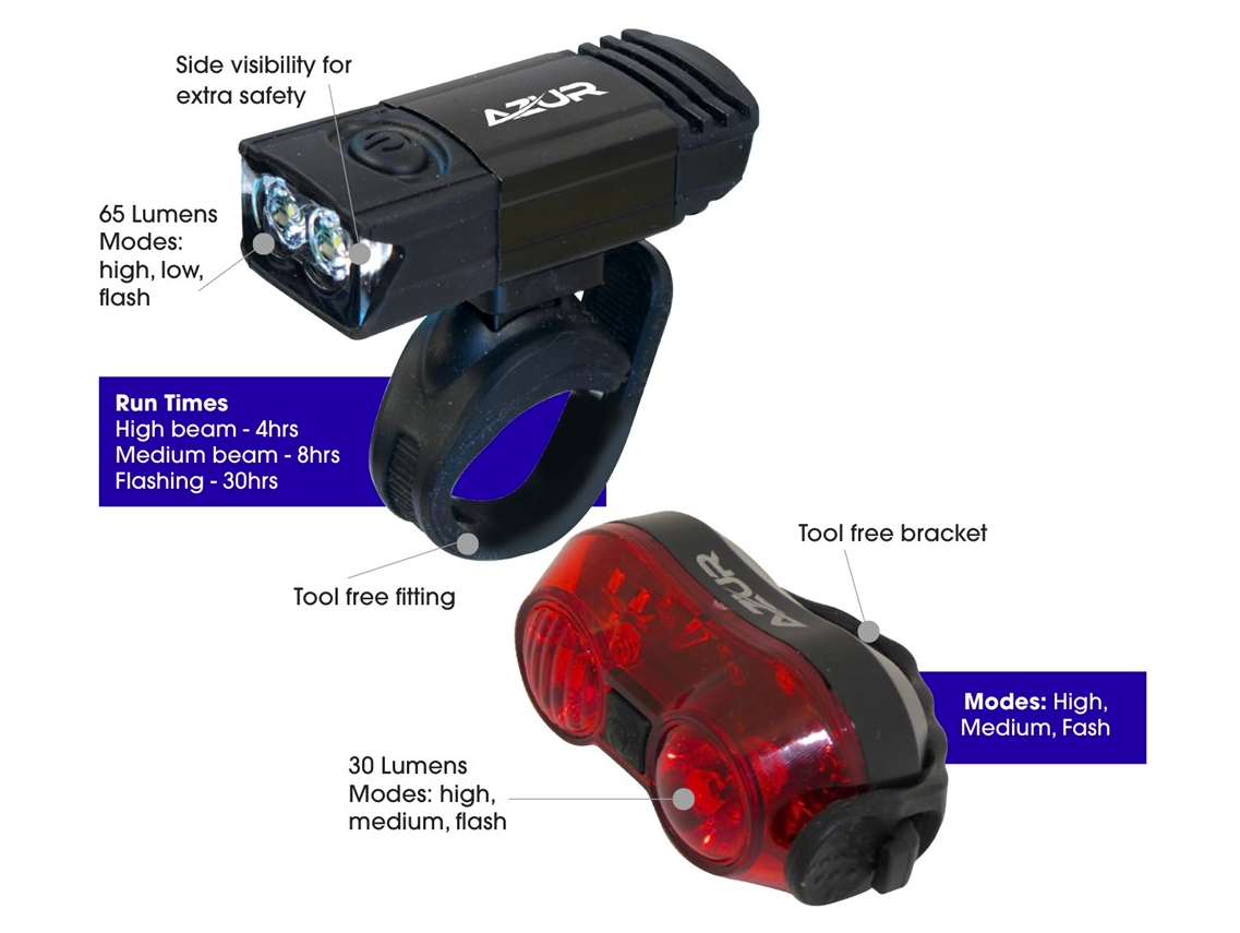 The Azur Deluxe Lightset is an affordable and reliable lightset perfect for commuting and casual riding.