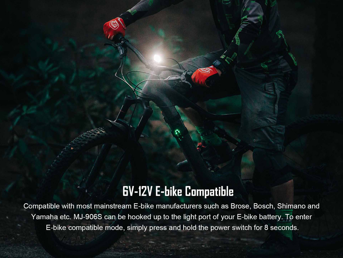 MJ-906S is a powerful bicycle light that utilises a high capacity external battery pack, while also offering compatibility for E-Bike’s power system: